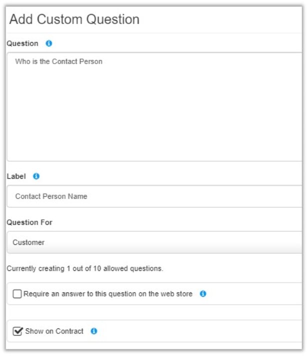 Setting up custom questions for contracts (transactions)