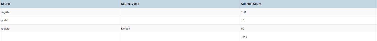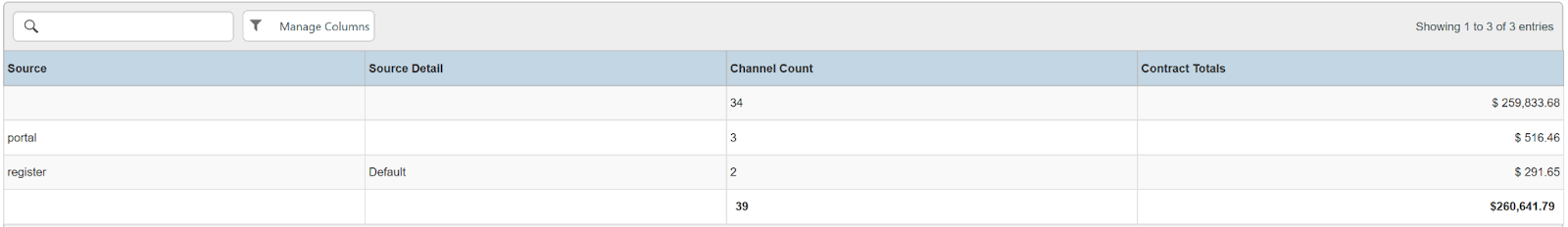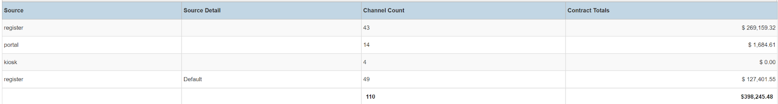 Columns: Source, Source Detail, Channel Count, Contract Totals