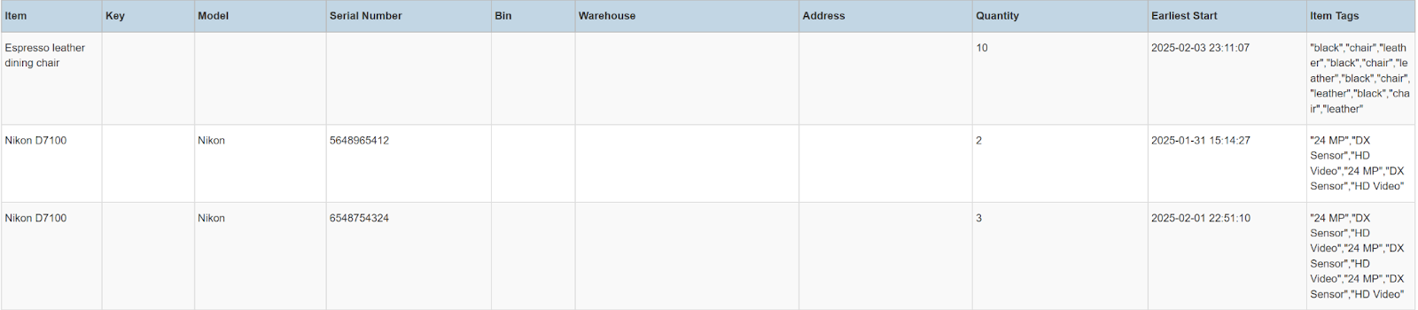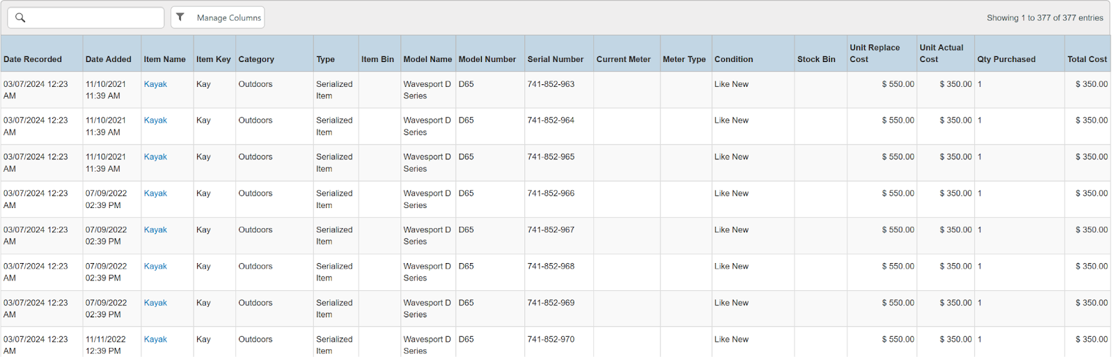 Serialized Inventory Item Report