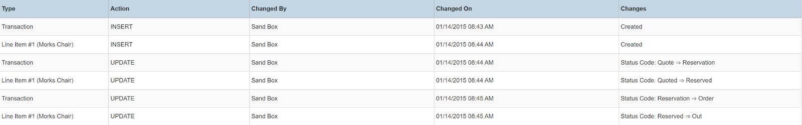 Transaction List Summary