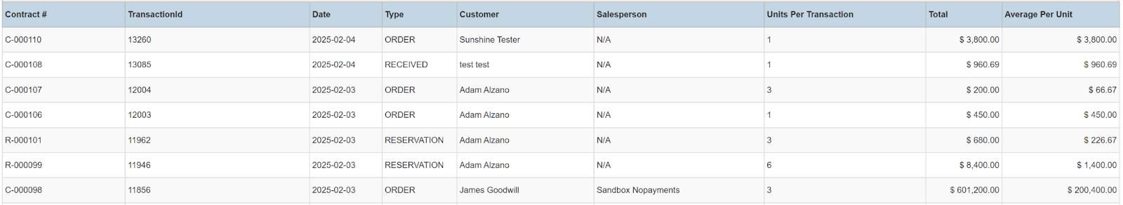 This report allows you to search for customer details via name. NOTE: Invoiced Totals include all invoiced amounts regardless of contract status. Order Totals include Totals from all Contracts in Order or Received/Closed status even if they have not yet been invoiced. Only transactions within the Transaction Date filter will be included in the summary. Transaction Date filter will not exclude any customers even if they have no transactions in the range.