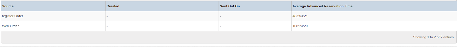 Columns: Source, Created, Sent Out On, Average Advanced Reservation Time