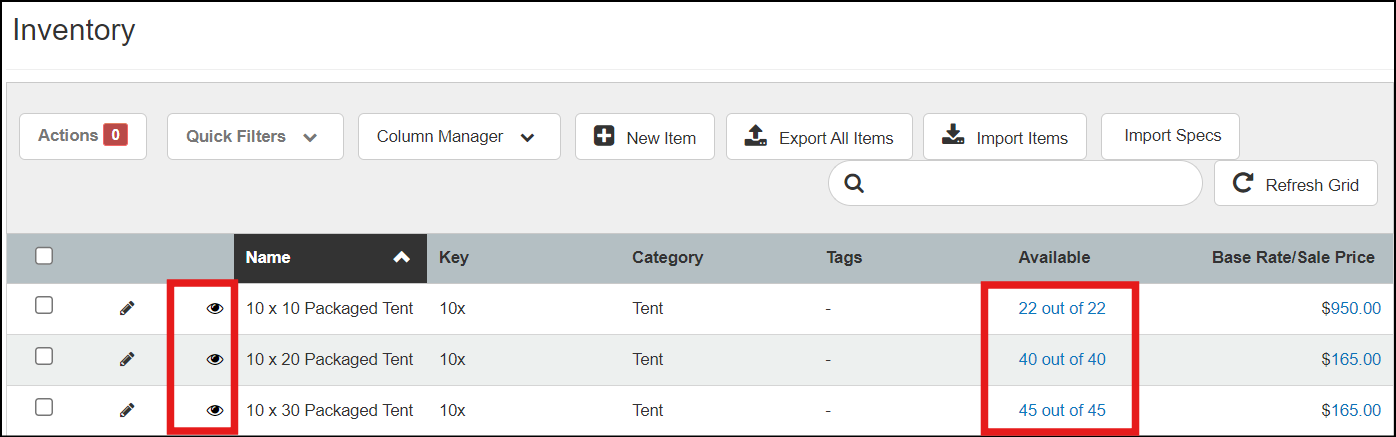 After selecting the eye symbol, the Item Availability calendar will appear.