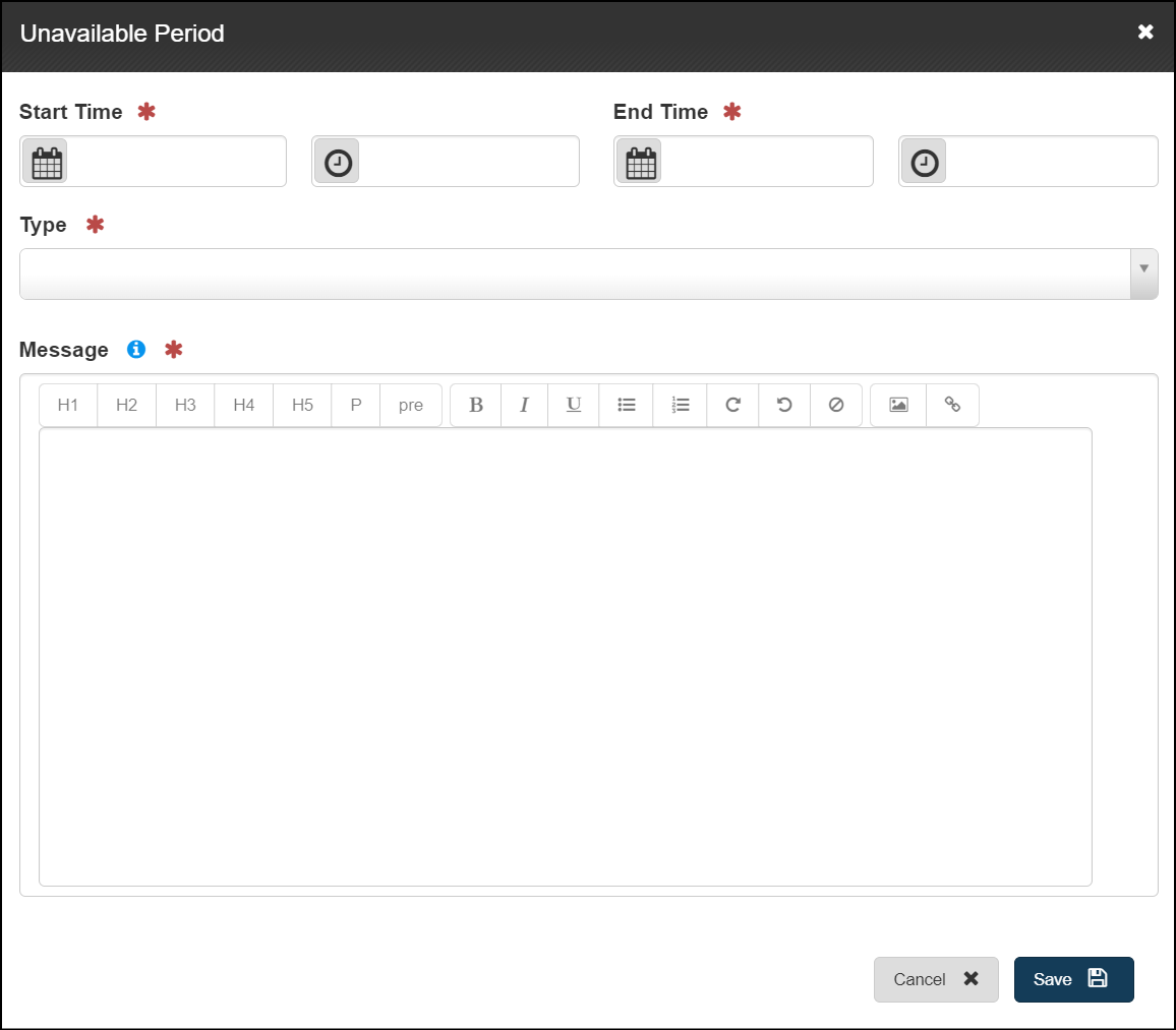 You can also mass Delete records by checking the boxes next to the Unavailability Periods and then clicking on ‘Delete Unavailable Periods.’Please note that once deleted records cannot be reactivated, you must create a new Unavailable Period to replace any missing records.