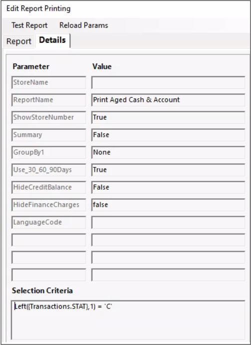 Selection Criteria = Left({Transactions.STAT},1) = 'C'