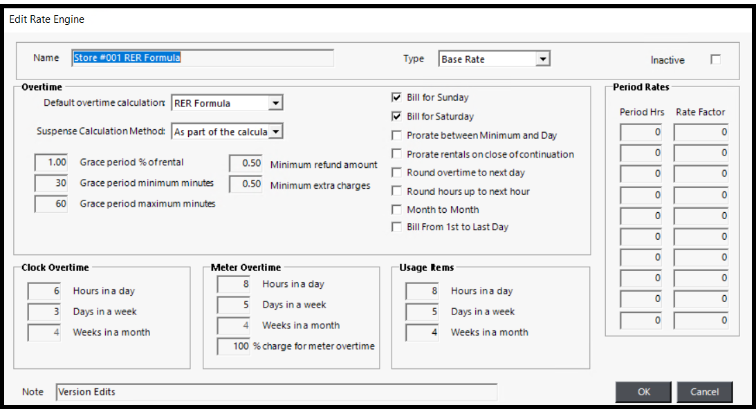 Rate Engines allows you to define and customize how your customers will be charged for renting items. When creating rate engines, you can define overtime and grace periods and configure weekend billing, proration of rates, and true month-to-month billing.