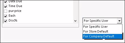 - From the drop-down menu, you can save your settings based on an individual user, by store default, or company default. This will save your current sort column.