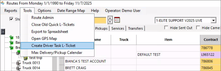 | ℹ️ L Tickets created from Dispatch Center behave the same as those created from a contract. They will appear in the same route view and share parent contract references. |