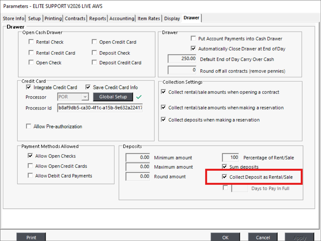 Collect Deposits as Rental/Sales Totals