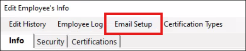 - Dropdown menu: allows you to designate an email setup based upon Company usage or each Individual Store usage for the selected employee.