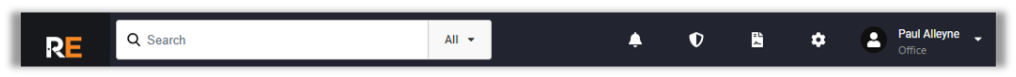 The Header allows you to use the Universal Search to find contracts, customers, item availability, and more. On the right-hand side, you can look at your notifications, configure the product, and log out of the Elite Interface.