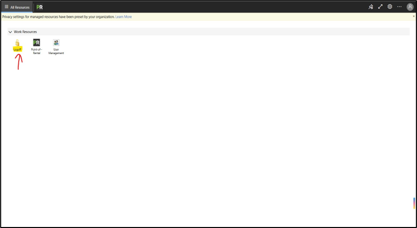 After clicking Log Out, you will be taken to the Point of Rental login screen. Click All Resources in the top-left corner.