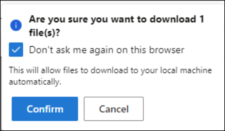 - You will see the following Window appear. Click “Confirm” to open File Explorer on the workstation being used to access POR.