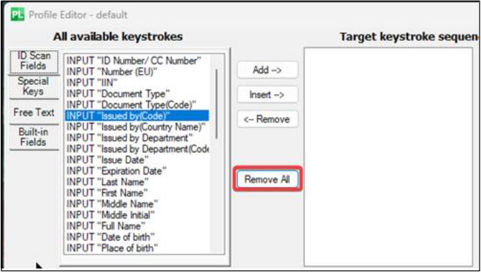 2. Ensure the Target Keystrokes Sequence list is empty.