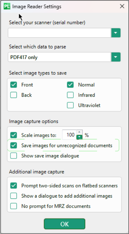 Save images for unrecognized documents (enable)