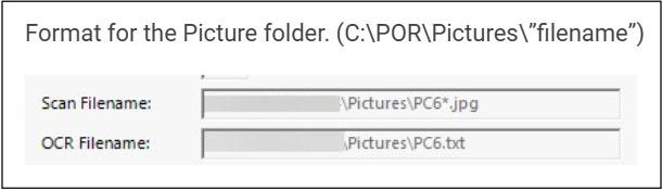 The path must point to the Pictures folder within POR on the server.