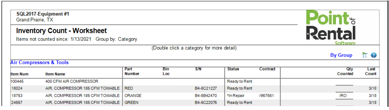 Inventory Count Report