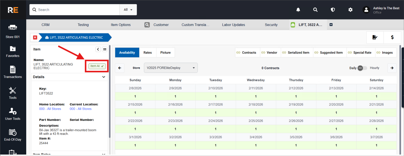 This button, labeled “Item AI,” will launch the interface.