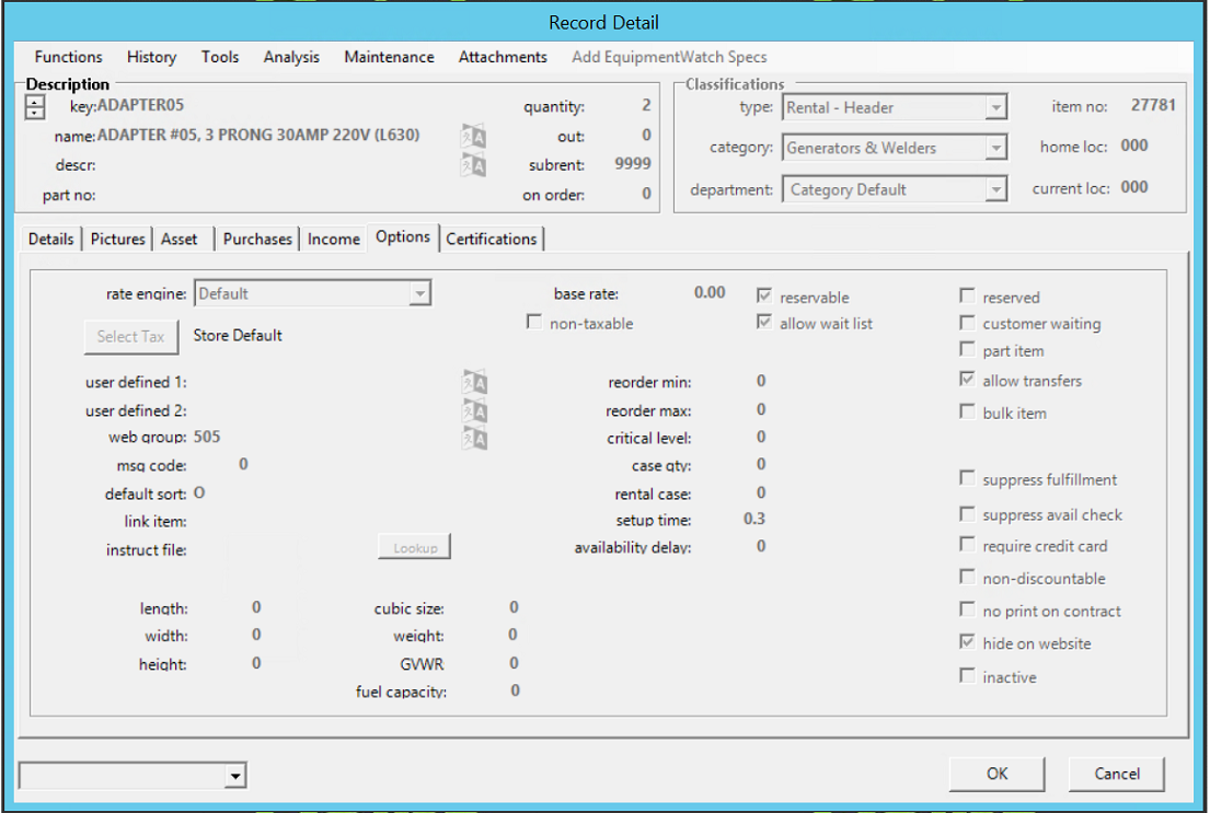 Item Availability 670Number of Views Subrental from Item Availability 276Number of Views Item Availability Quotes 202Number of Views Store Transfer Delay 349Number of Views Elite | Item File - Options Tab 794Number of Views