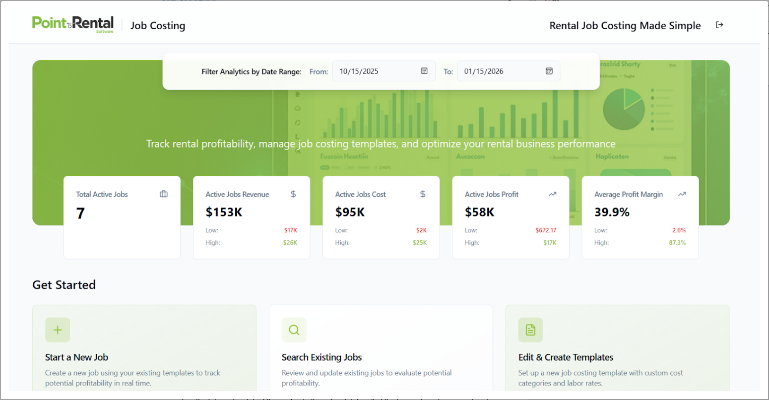 You can create templates, build jobs, adjust expenses, and review your margins in real time—all from the Job Costing dashboard.