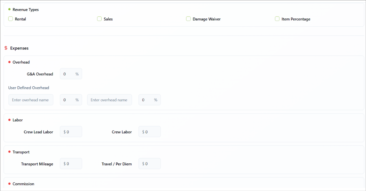 A blank template opens. Enter a Template Name, select a revenue type for the template, and enter the standard expenses.