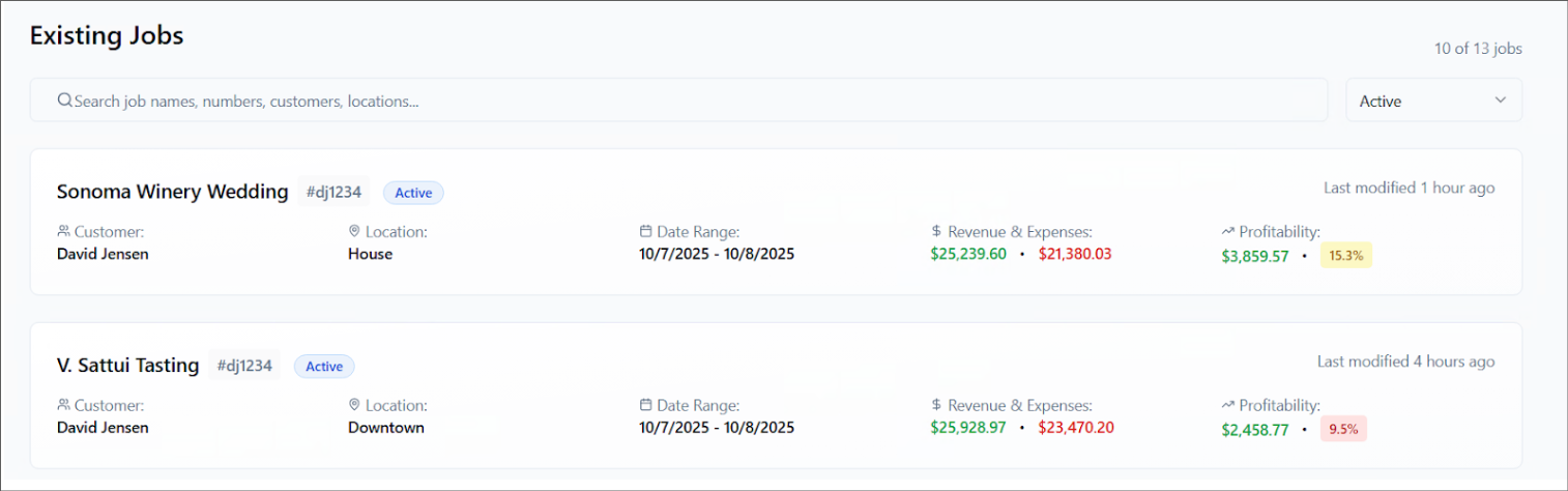 Event planning often includes additional expenses like labor, travel, and unexpected costs. Job Costing helps you compare these expenses against your revenue so you can quickly see if you are making or losing money.