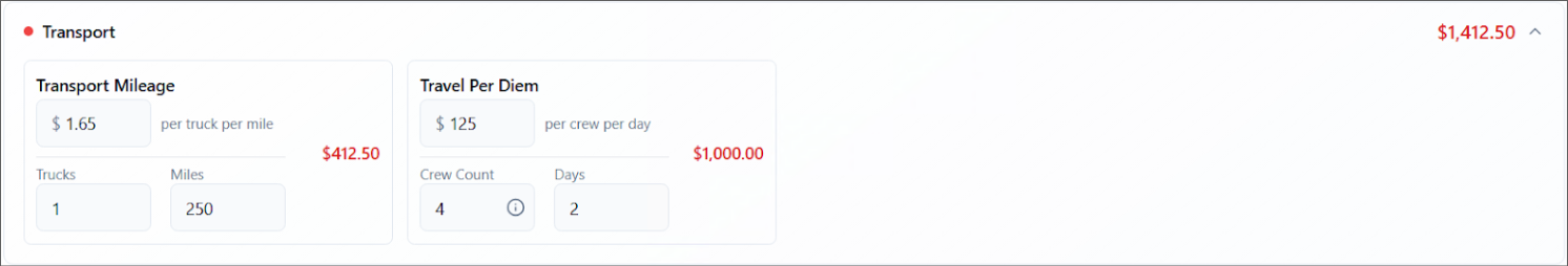 Once a job has been created, in the job view, you can manually update any expense. Any changes are automatically recalculated. For example, if you need to override a per diem, Job Costing automatically recalculates the expense.