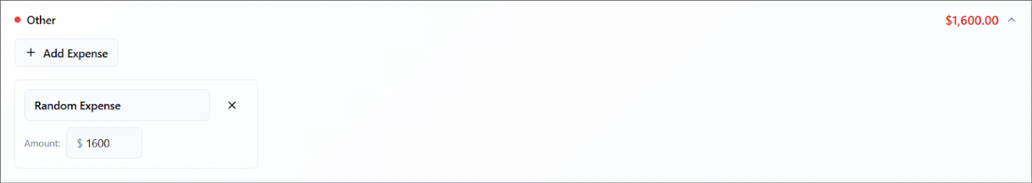 Enter unexpected costs in the Other section. Use this for uncategorized or last-minute expenses.