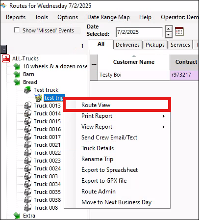 - Select Route View from the menu.