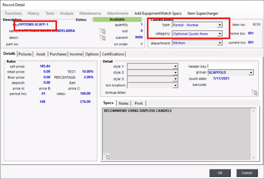3. Type - Enter whether it is a Rental or Sales type item