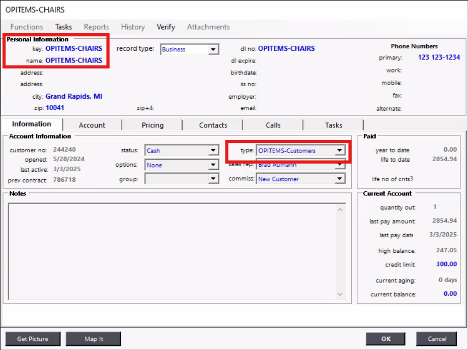 2. For the customer select an OPITEMS customer.