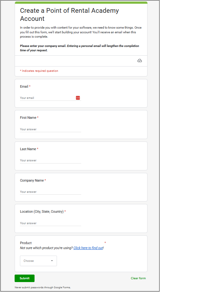 2. Once selected, it will take you to a Google form. Fill out each section before submitting.