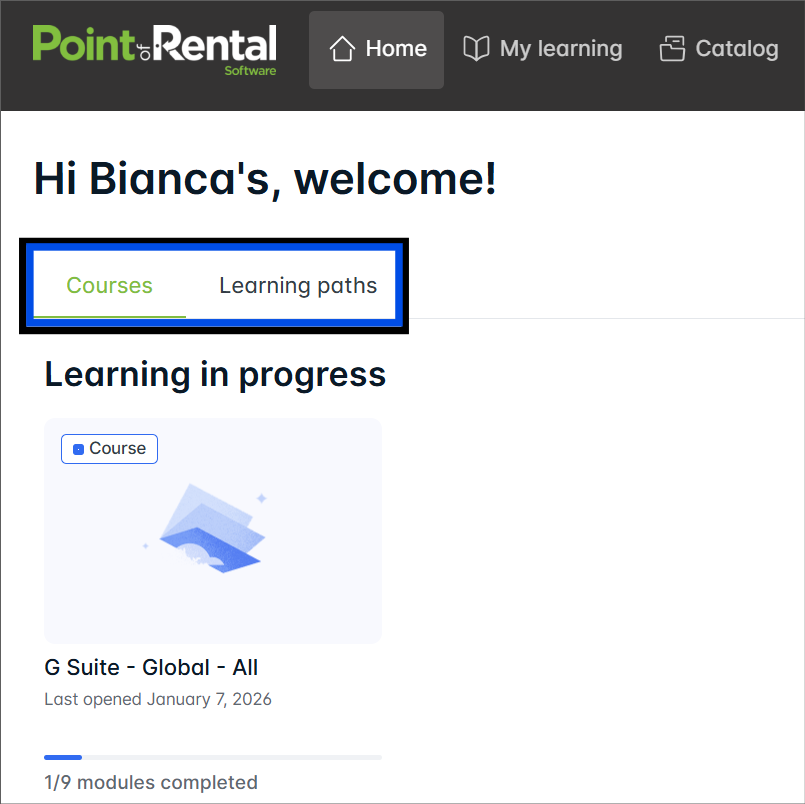 Use tabs to switch between Courses and Learning Paths