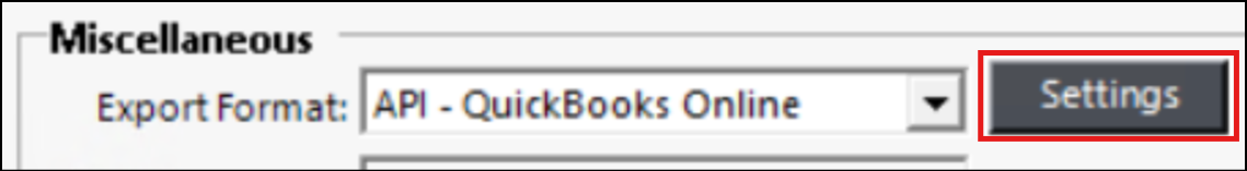 Select API – QuickBooks Online as the Export Format in Account Numbers.