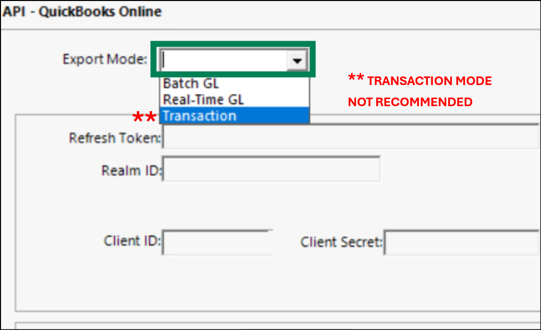 | Transaction** NOT Recommended except in rare enterprise corporation instances, as major POR functions are disabled in this mode. |