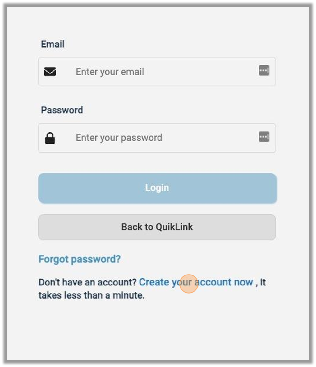 QuikLink supports consumers signing up for dedicated Consumer Portal access by clicking the 'Login for More Info'