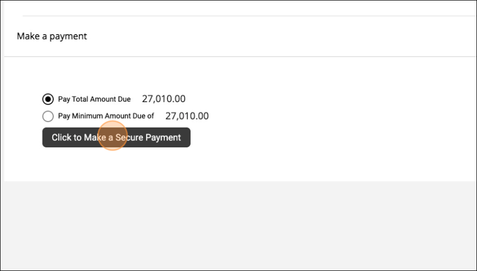 The consumer will be presented with the options you set in Elite. Once they select the amount they want to pay, they can click 'Click to Make a Secure Payment.'