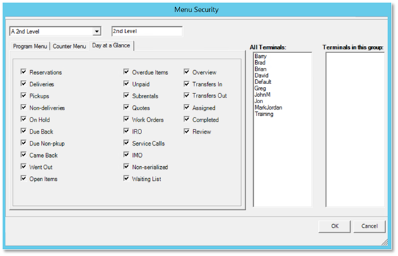 Removing Tabs from Day at a Glance from Security Menu