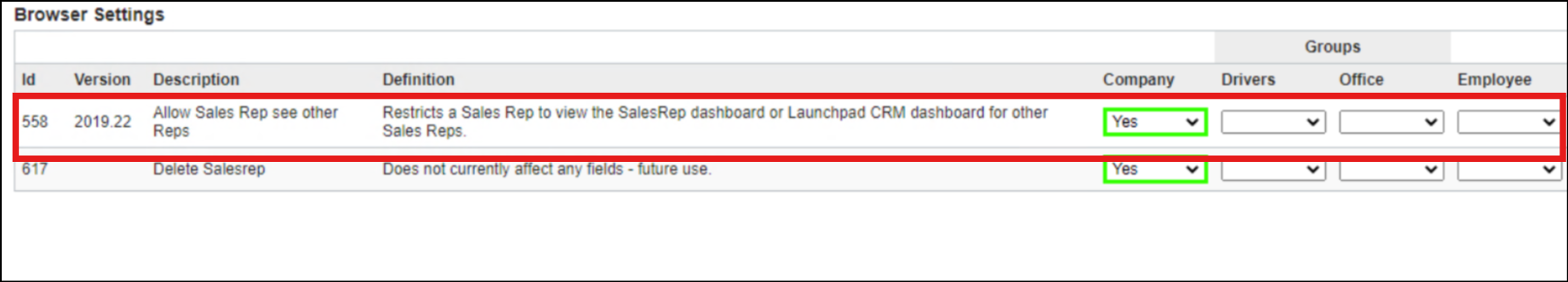 - Elite ONLY - You can set a security features to allow or not allow other sales reps to see other sales reps' numbers. You can find this setting by going to the Configuration gear > Security (located System) > Browser Settings.