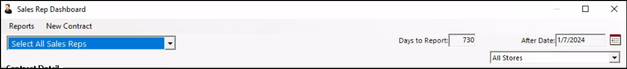 | Days to Report | Total number of days the report is generating information. For example, if you want to see all contracts for a certain period. Entering 365 would show all contracts, status, and revenue based on the last 365 days. |