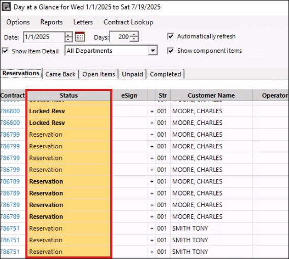 - You can find the reservation in the Open Items tab in Day at a Glance.