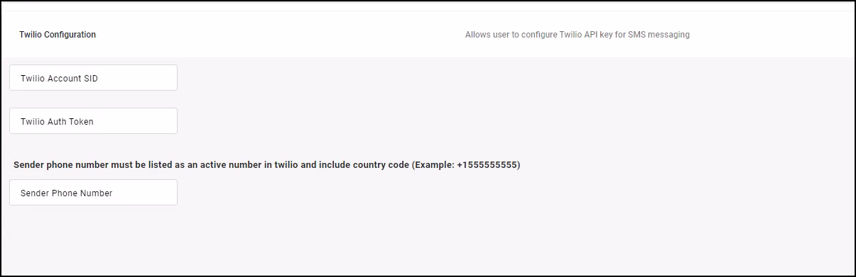 - Possess the specified security clearance to access the Twilio SMS Integration configuration.