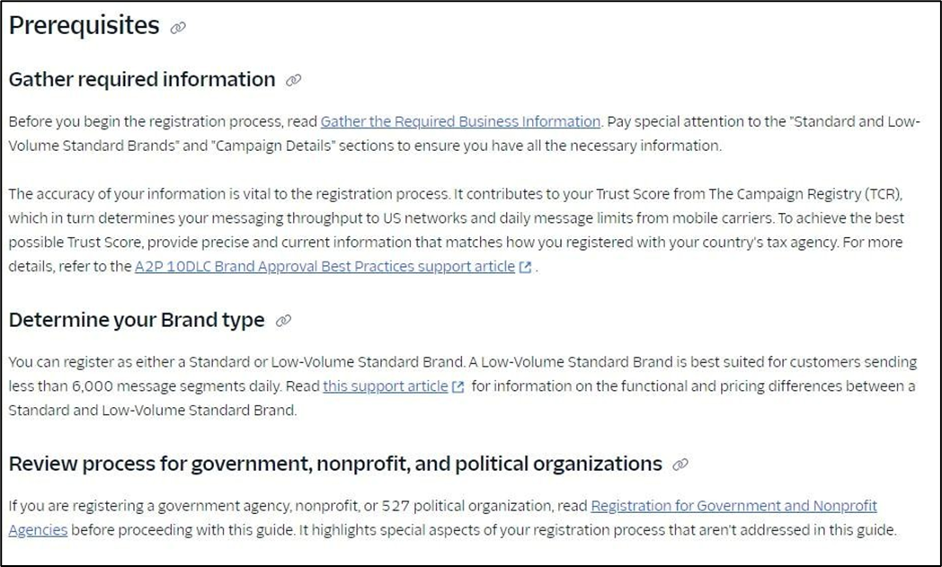 The onboarding process will take you through setting up a brand first and then the campaign registration. If you are on a trial account, you will need to upgrade before moving forward