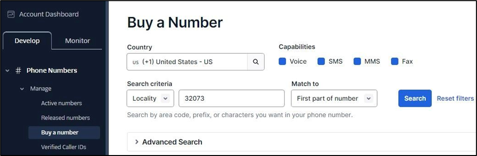 - Purchase a phone number from Twilio. You can choose either a local or toll-free number.