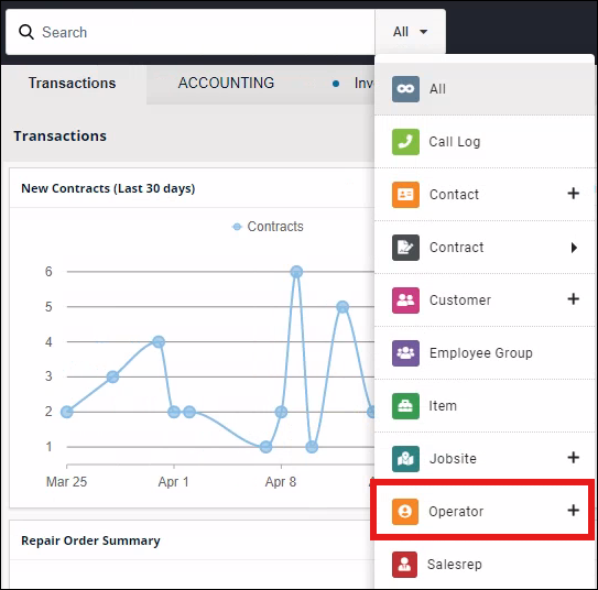- In the Search Bar, click the down arrow and choose ‘Operator.’