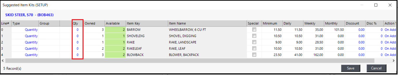 *Important note – Any item in a suggested items list with an item type of Rental Accessory will be added to the contract at zero cost, no matter what the rates are set to.