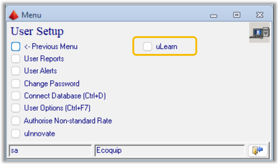 If you’re using the Old Style Main Menu, select uLearn in the User Setup Menu.