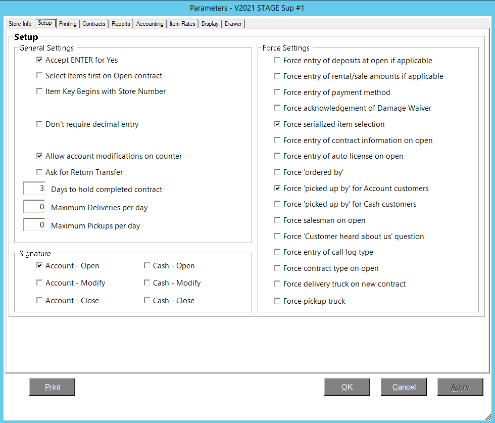 - Checked: Enter Picked up by when opening a contract for an Account customer.
