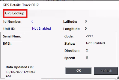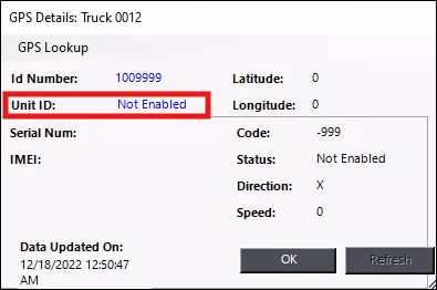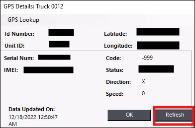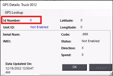 Double-click the 0 next to “Device ID” in the Dispatch Center’s GPS Details Screen.