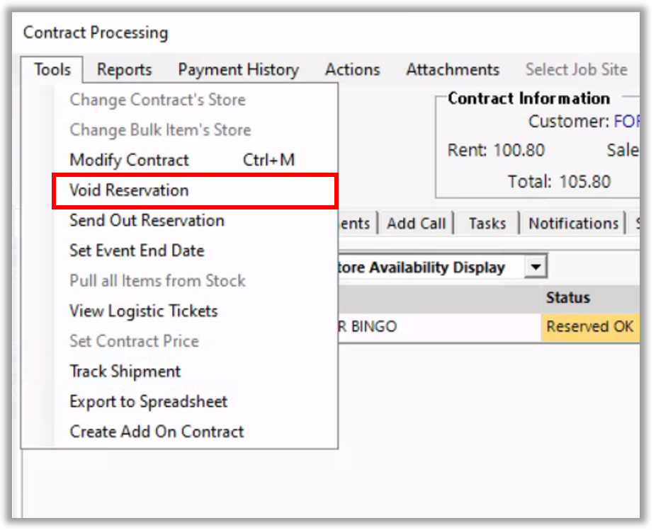 - Once all those items are back on the reservation, you can void the reservation.